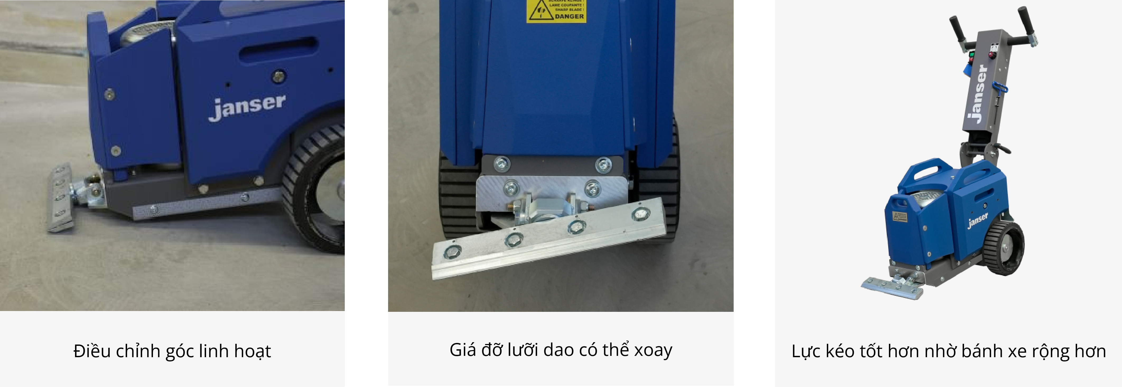 STRATO-MOBIL V nổi bật với khả năng điều chỉnh góc lưỡi dao linh hoạt và giá đỡ lưỡi dao có thể xoay, đảm bảo lực kéo tối ưu và hiệu quả bóc dỡ sàn.