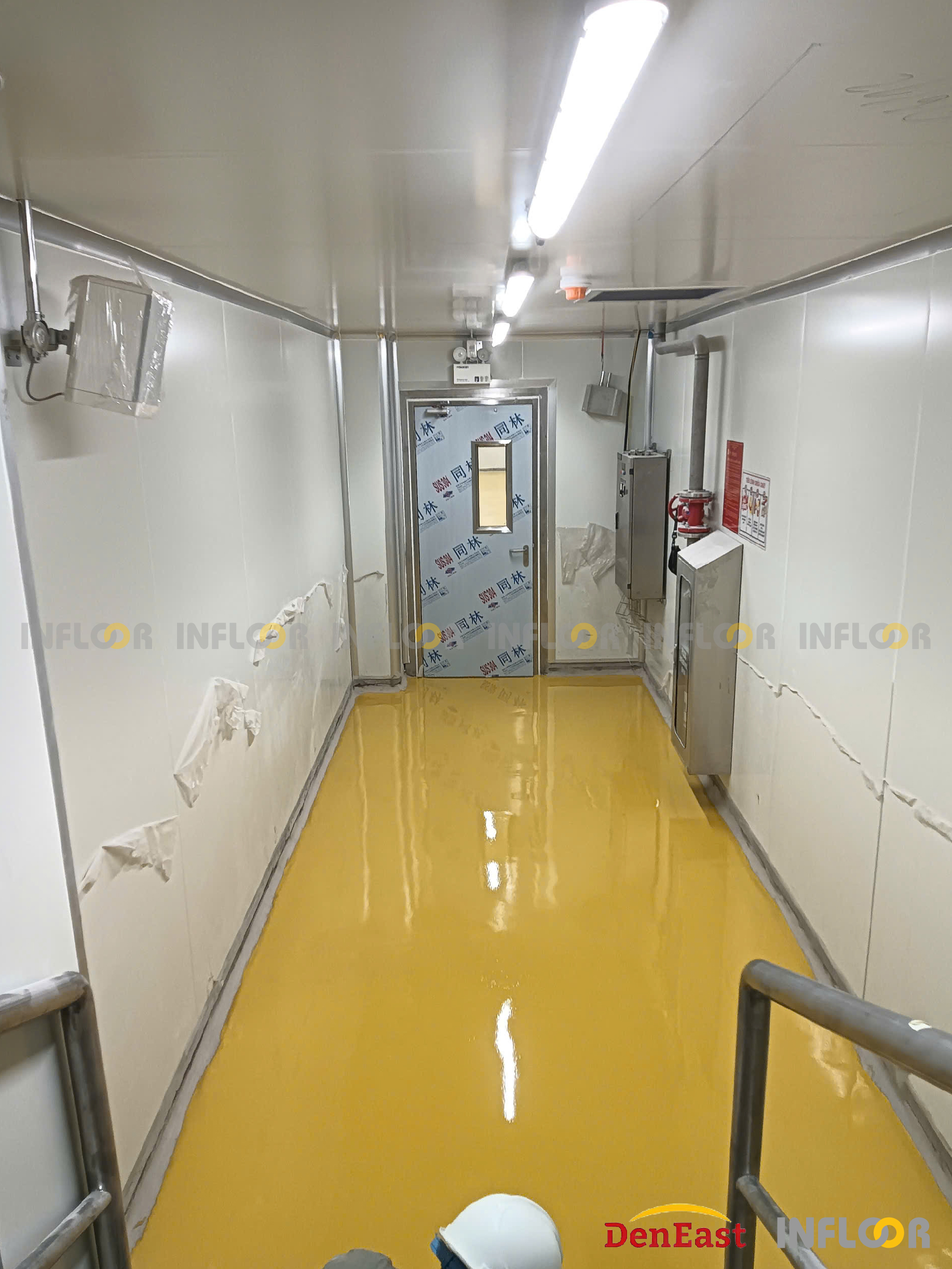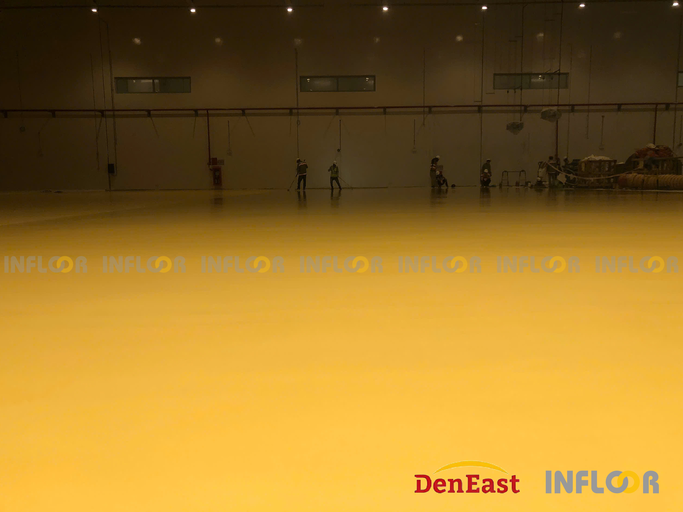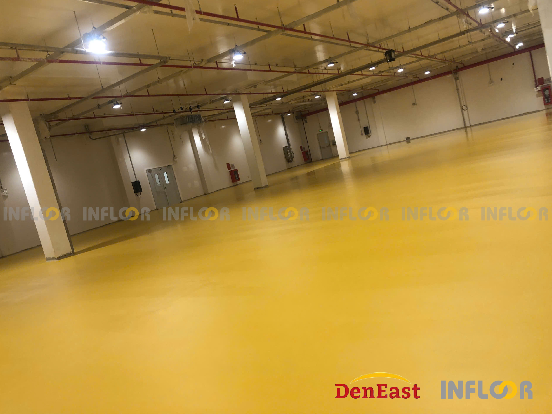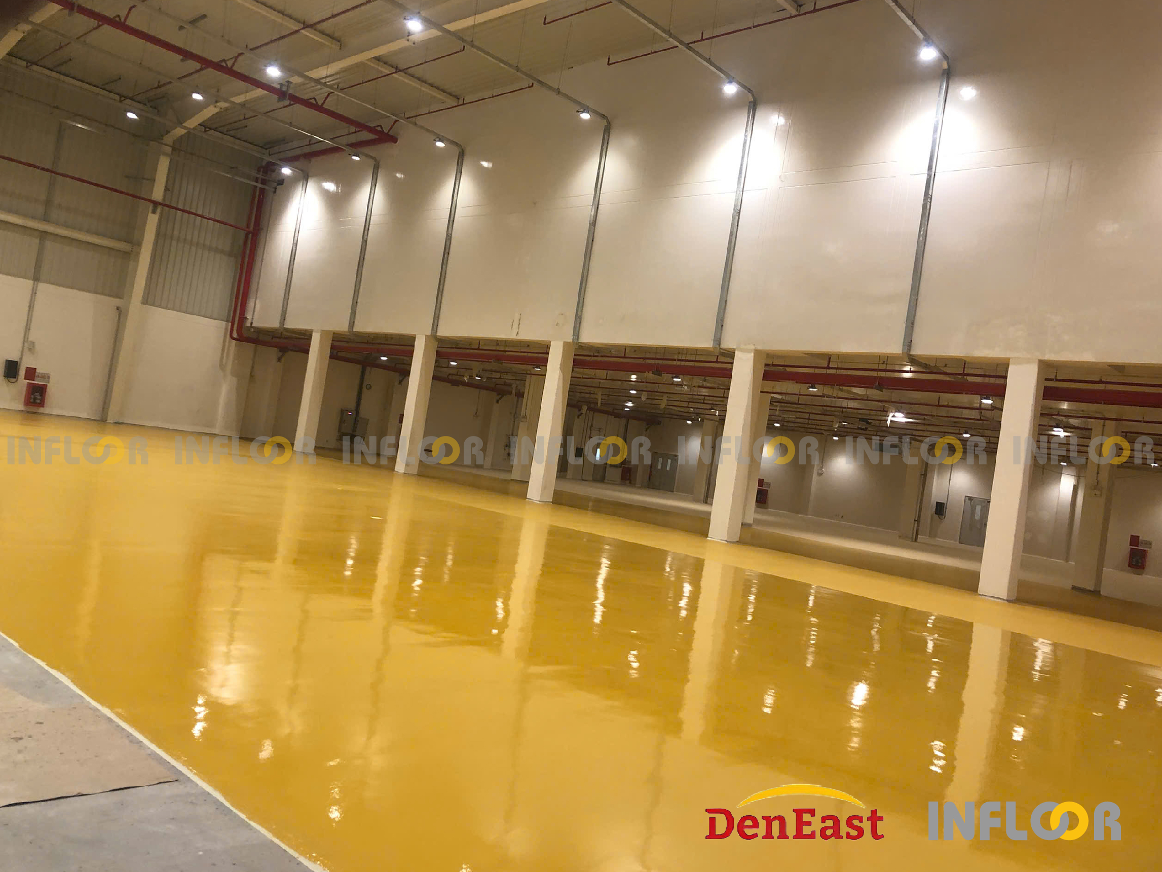 Đặc thù của ngành đồ uống là bề mặt sàn thường xuyên tiếp xúc với nước, các axit hữu cơ từ nguyên liệu thực phẩm và quy trình vệ sinh bằng nước nóng gây sốc nhiệt mạnh. DenEast đã tiếp tục tin tưởng lựa chọn giải pháp sàn Polyurethane (PU) chuyên dụng do Infloor cung cấp và thi công cho các khu vực trọng yếu trong nhà xưởng.