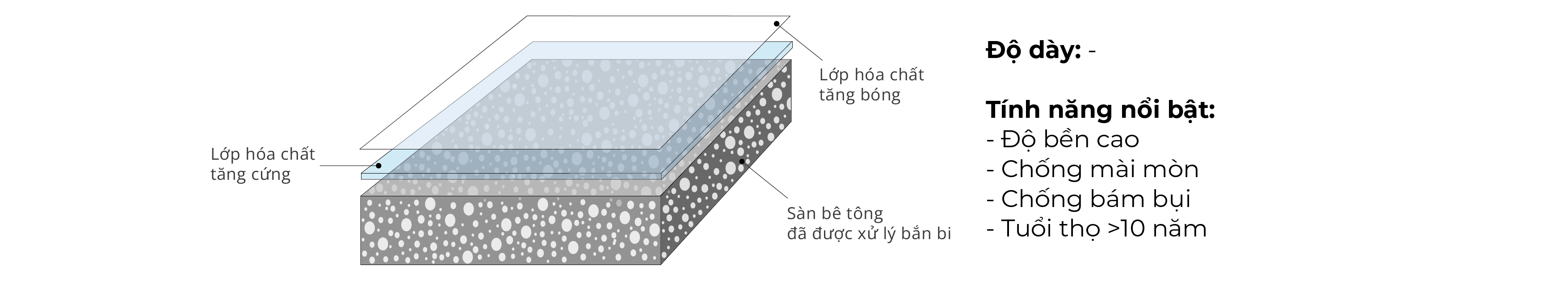 Sàn có đặc tính chịu tải trọng cao, chống bụi, chống thấm nhẹ, dễ lau chùi và có thể đạt nhiều mức độ hoàn thiện khác nhau từ mờ đến bóng gương. Ưu điểm lớn nhất của loại sàn này chính là tính bền vững, thẩm mỹ tối giản và chi phí bảo trì thấp.