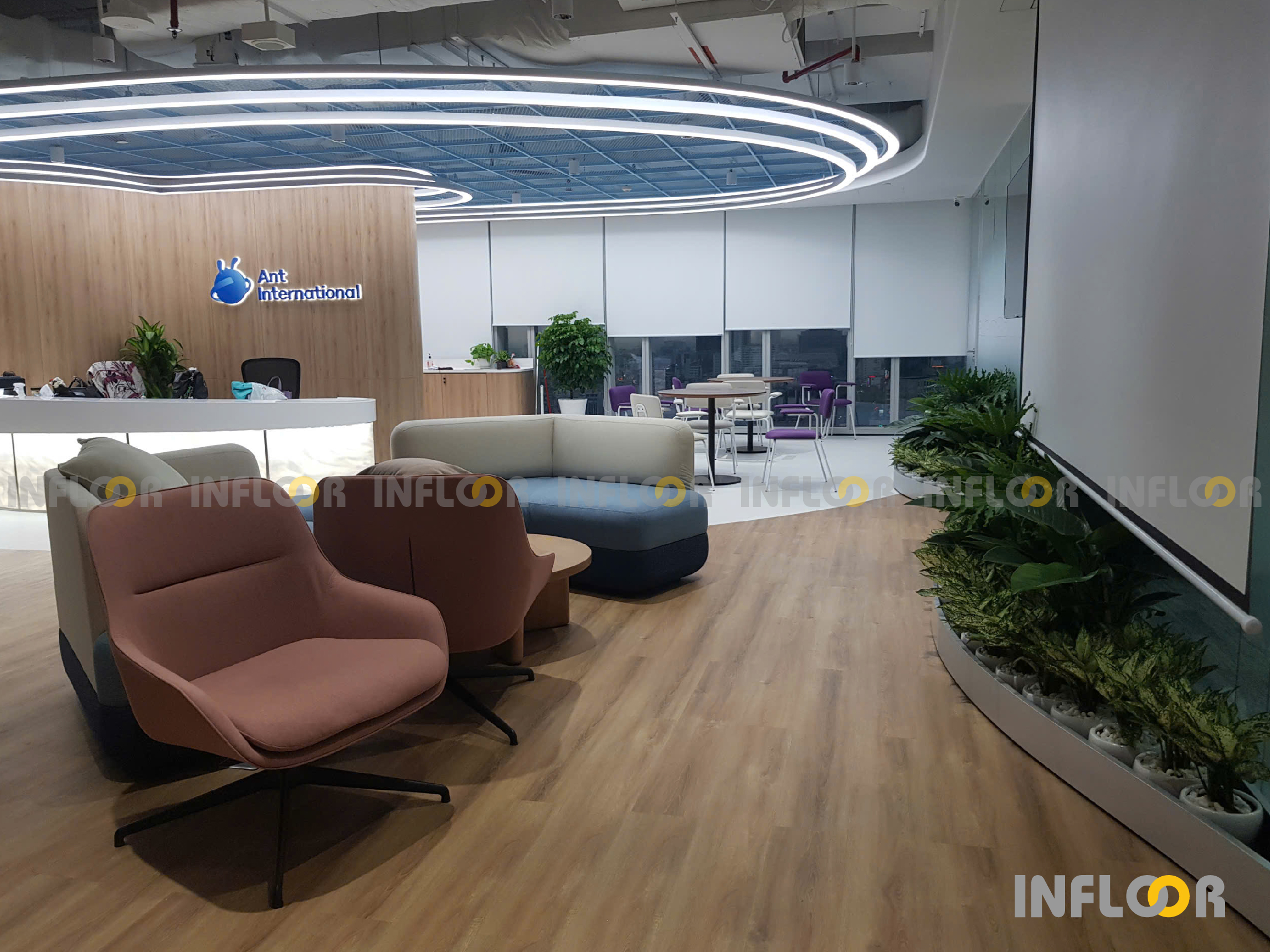 Ant International đã lựa chọn giải pháp sàn vinyl Scala từ thương hiệu Gerflor (Pháp). Dự án hướng tới việc kiến tạo một không gian văn phòng sang trọng, chuyên nghiệp và bền vững theo thời gian.